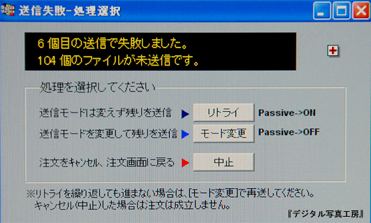 リトライ ボタンをクリックしてください。ご注文が途中より再開されます。